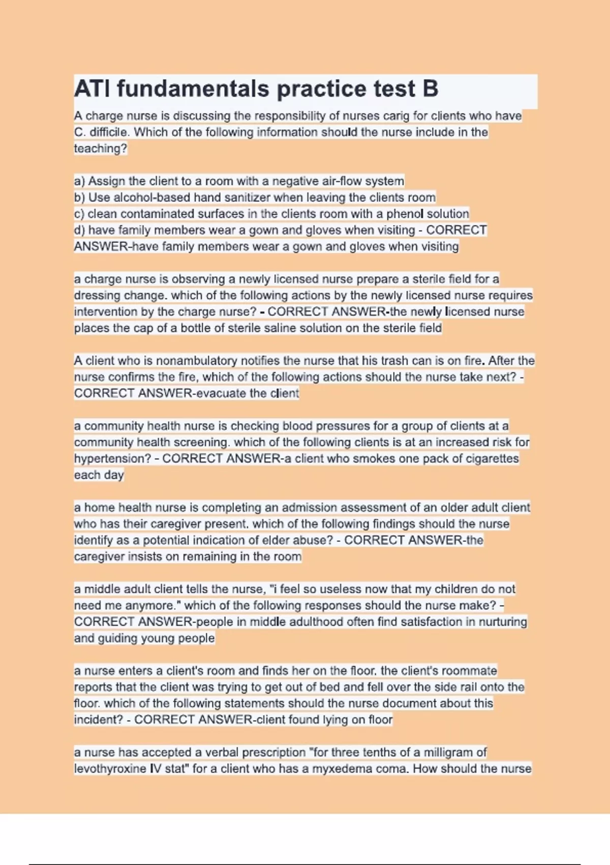 ATI fundamentals practice test B Questions & 100% Verified Correct Answers with complete solutions (Latest update