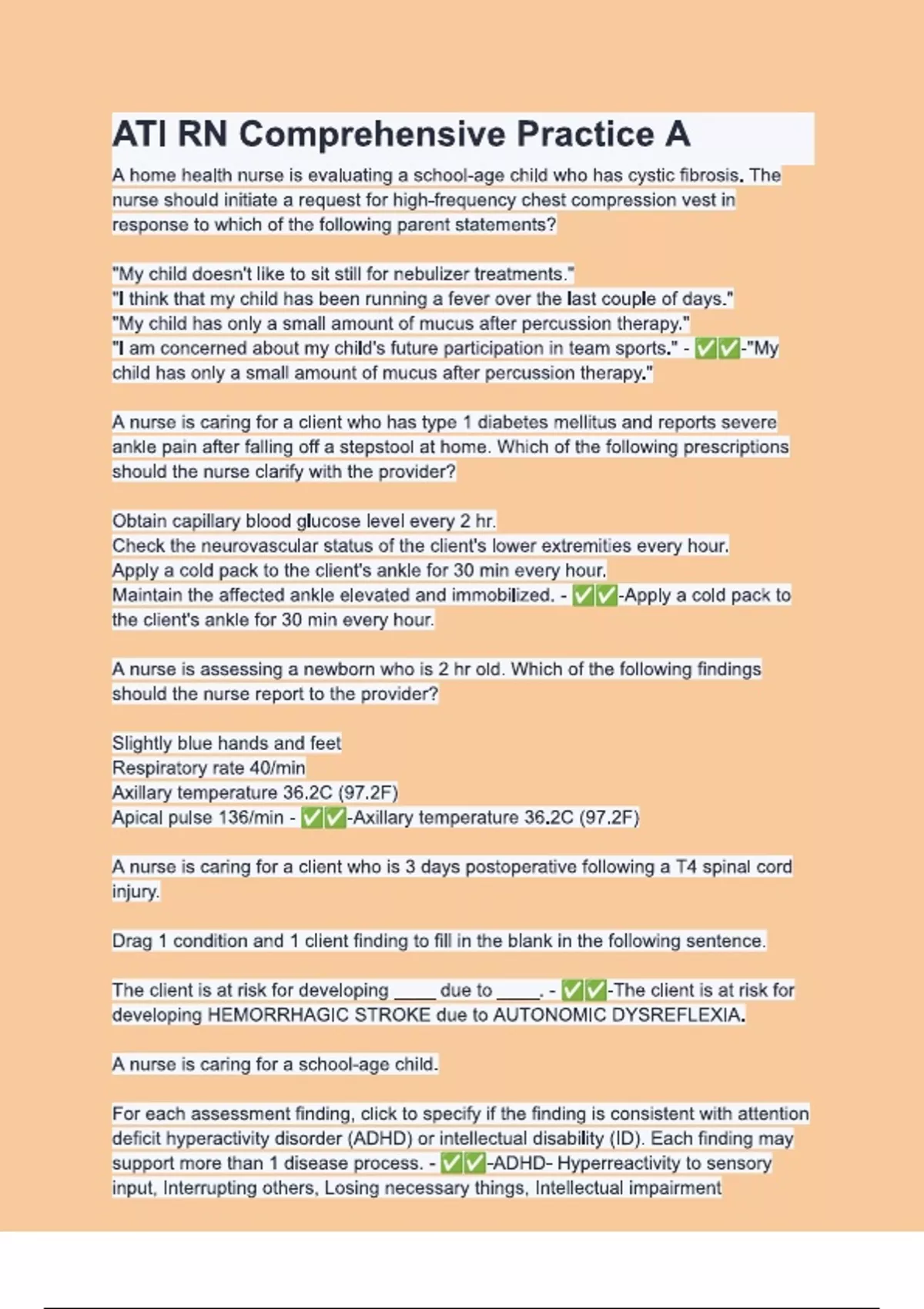 ATI RN Comprehensive Practice A Questions & 100% Verified Correct Answers with complete solutions (Latest update