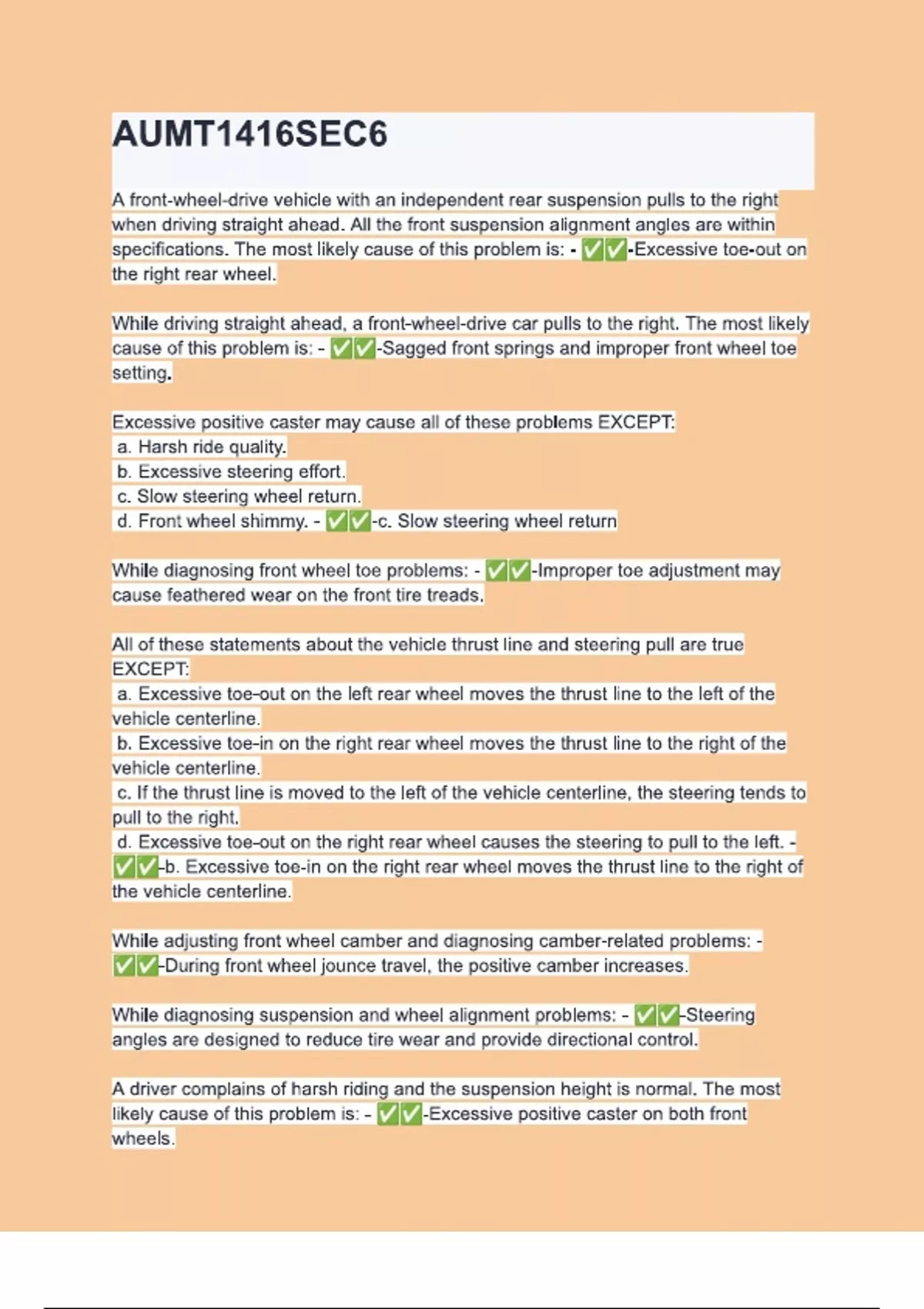 AUMT1416SEC6 Questions & 100% Verified Correct Answers with complete solutions (Latest update