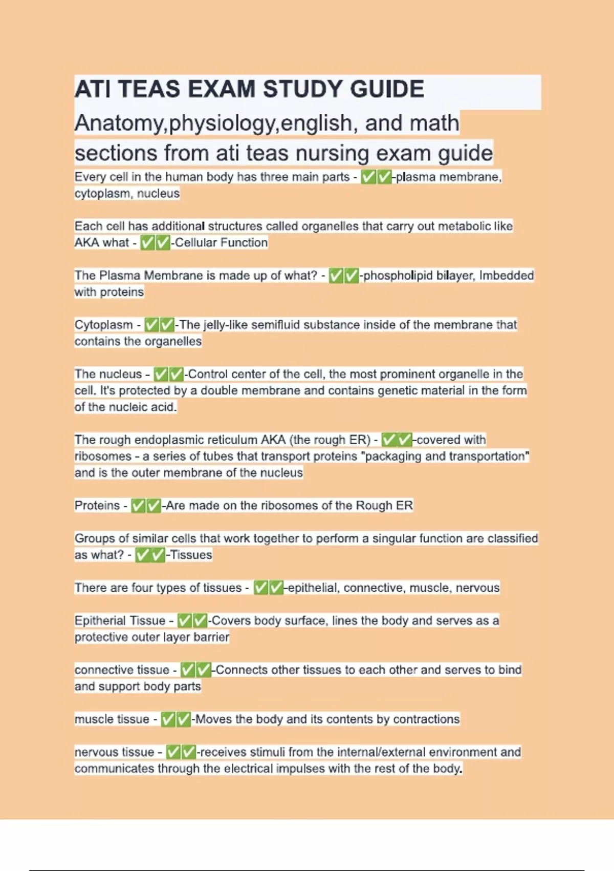 ATI TEAS EXAM STUDY GUIDE Questions & 100% Verified Correct Answers with complete solutions (Latest update