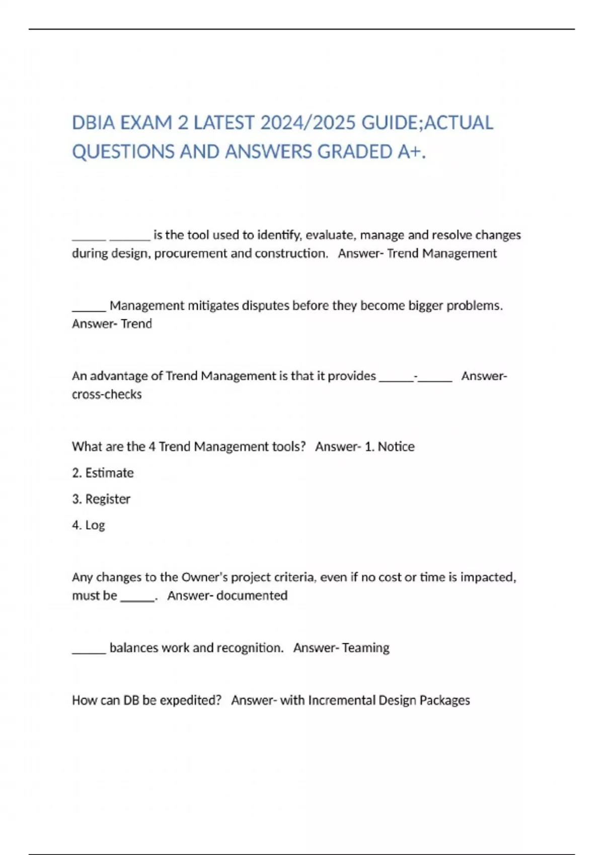 DBIA EXAM 2 LATEST 2024/2025 GUIDE;ACTUAL QUESTIONS AND ANSWERS GRADED 100% VERIFIED