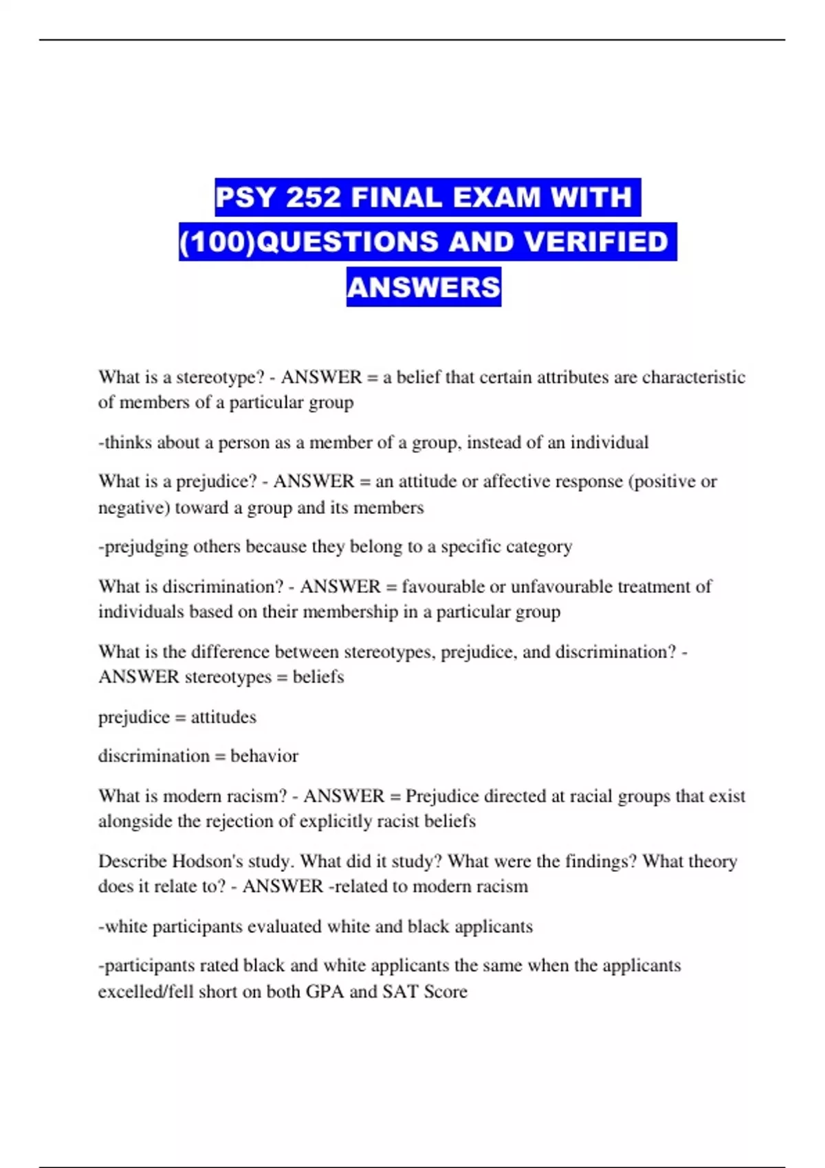 PSY 252 FINAL EXAM WITH