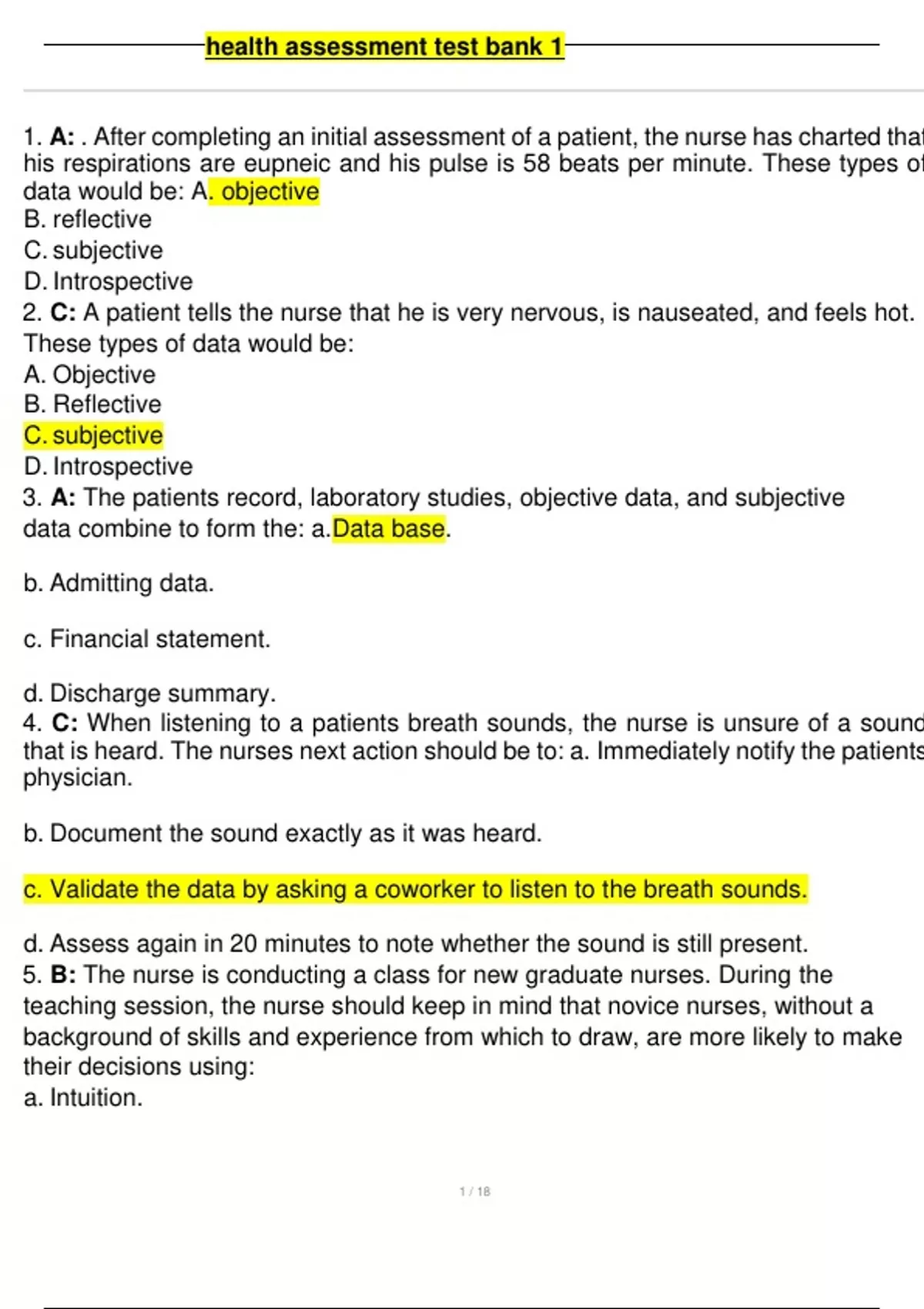 , health assessment test bank 1