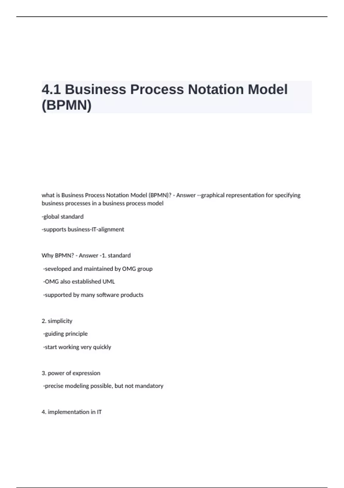 Business Process Notation Model (BPMN) Exam Questions and Answers