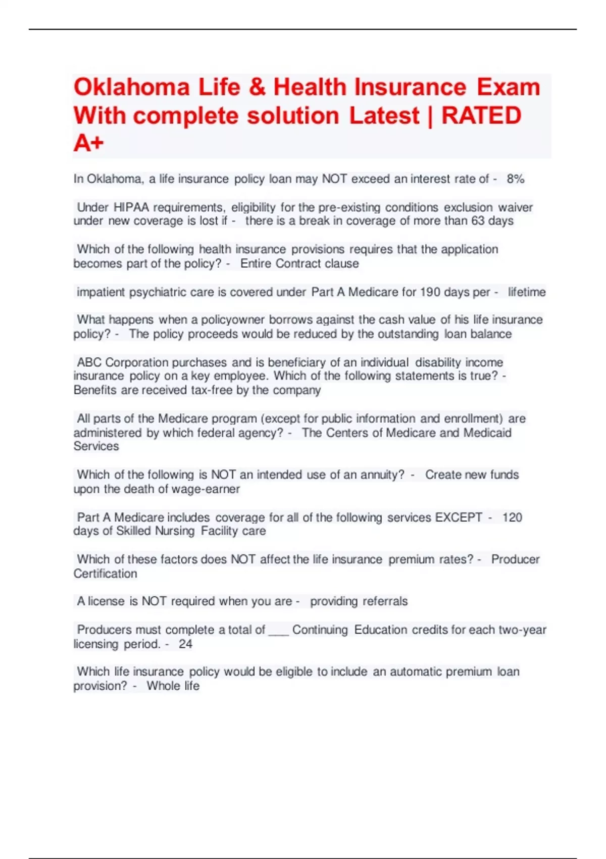In Oklahoma, a life insurance policy loan may NOT exceed an interest rate of - 8%