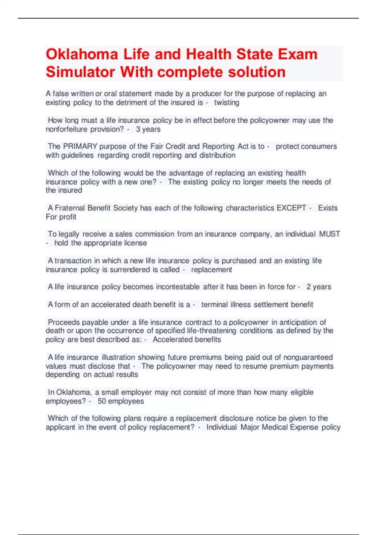 policy are best described as: - Accelerated benefits