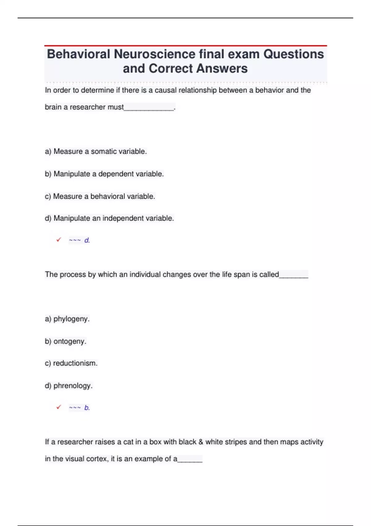 and Correct Answers