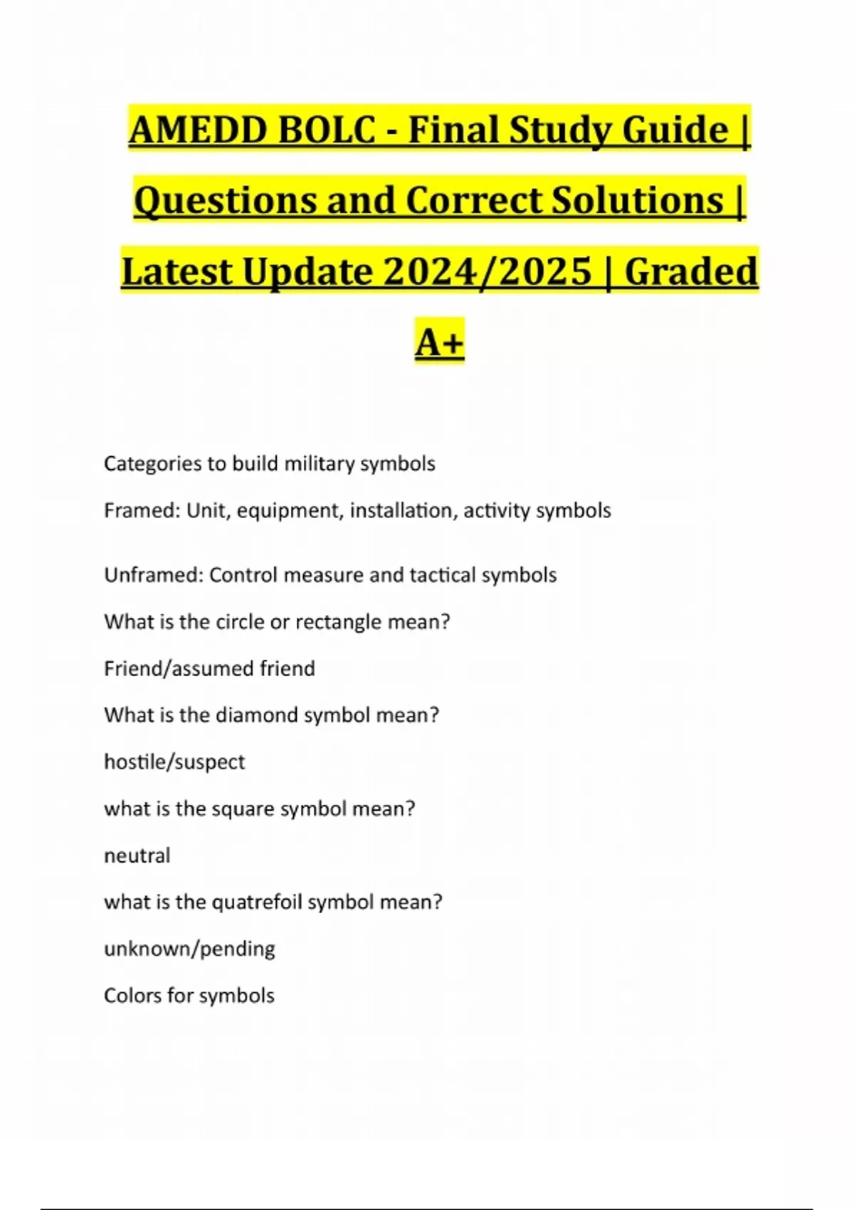 AMEDD BOLC - Final Study Guide | Questions and Correct Solutions | Latest Update 2024/2025 | Graded A+