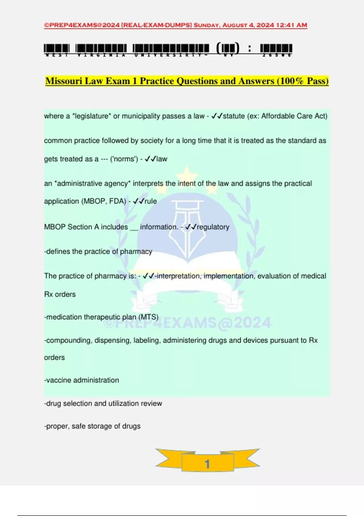 Missouri Law Exam 1 Practice Questions and Answers (100% Pass)