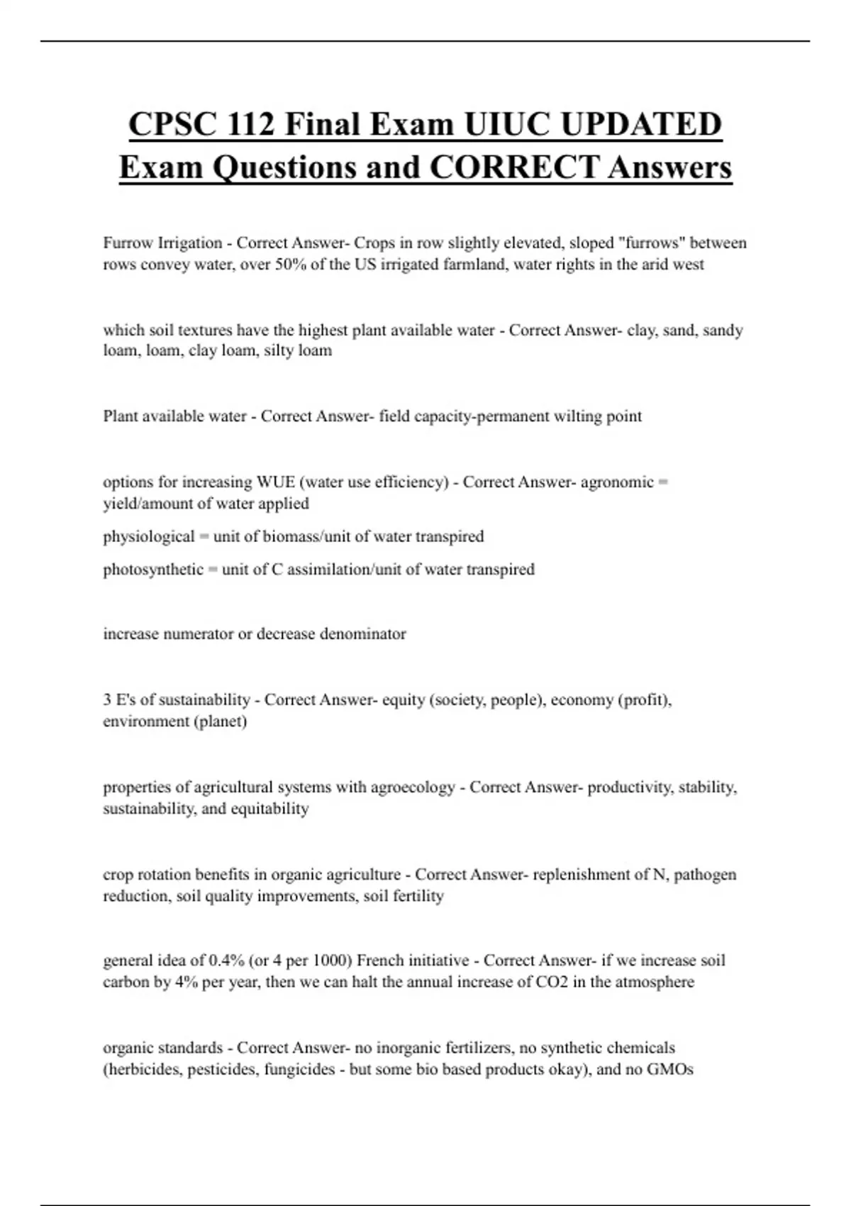 Plant available water - Correct Answer- field capacity-permanent wilting point