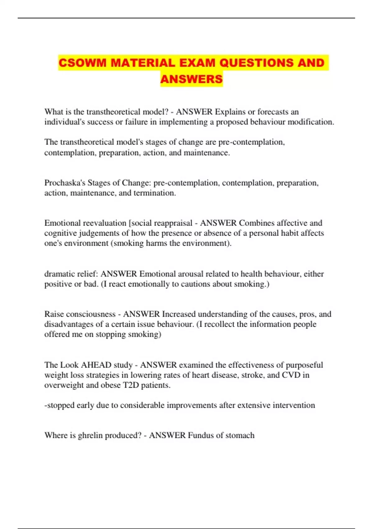 CSOWM MATERIAL EXAM QUESTIONS AND