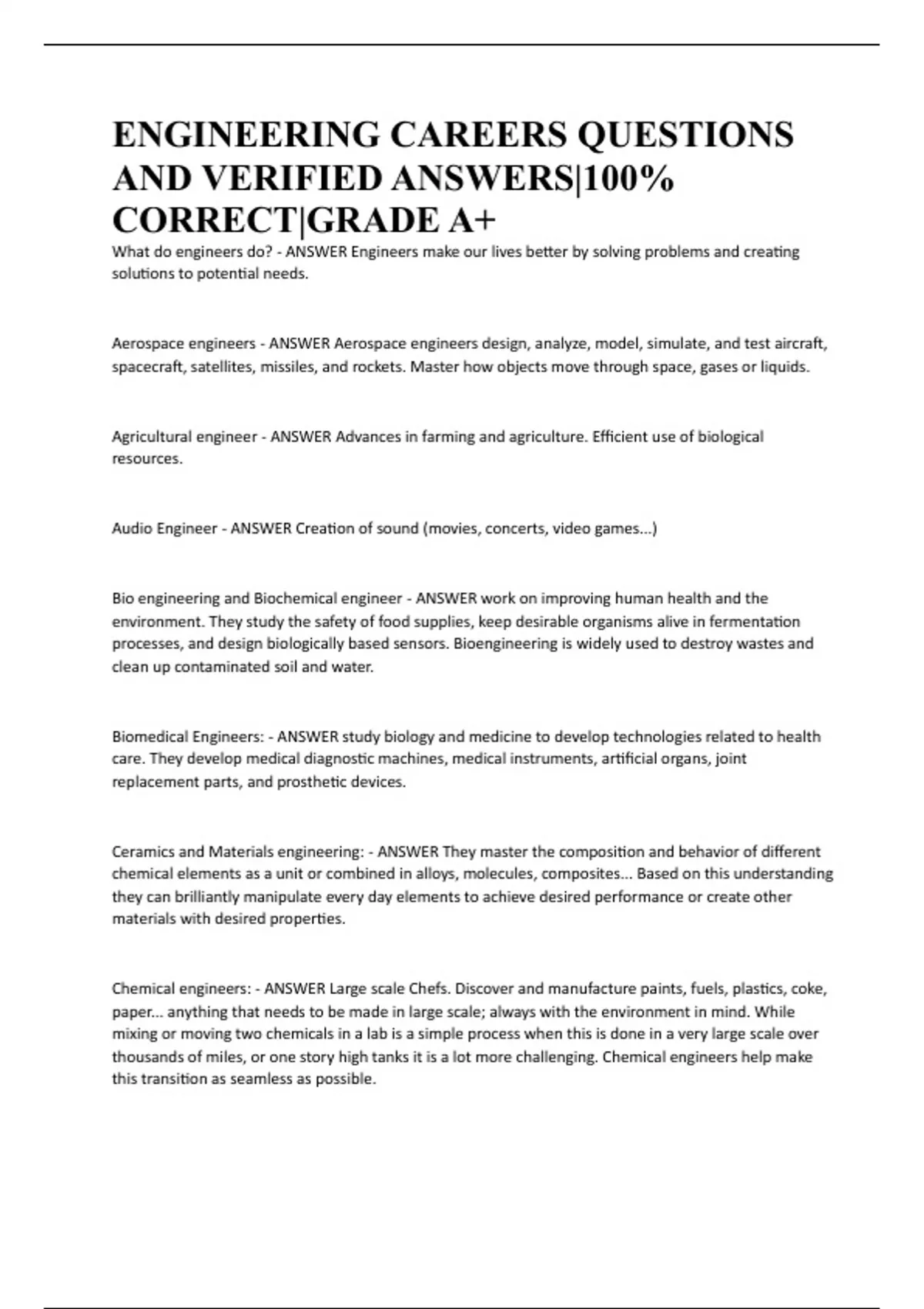 Ceramics and Materials engineering: - ANSWER They master the composition and behavior of different