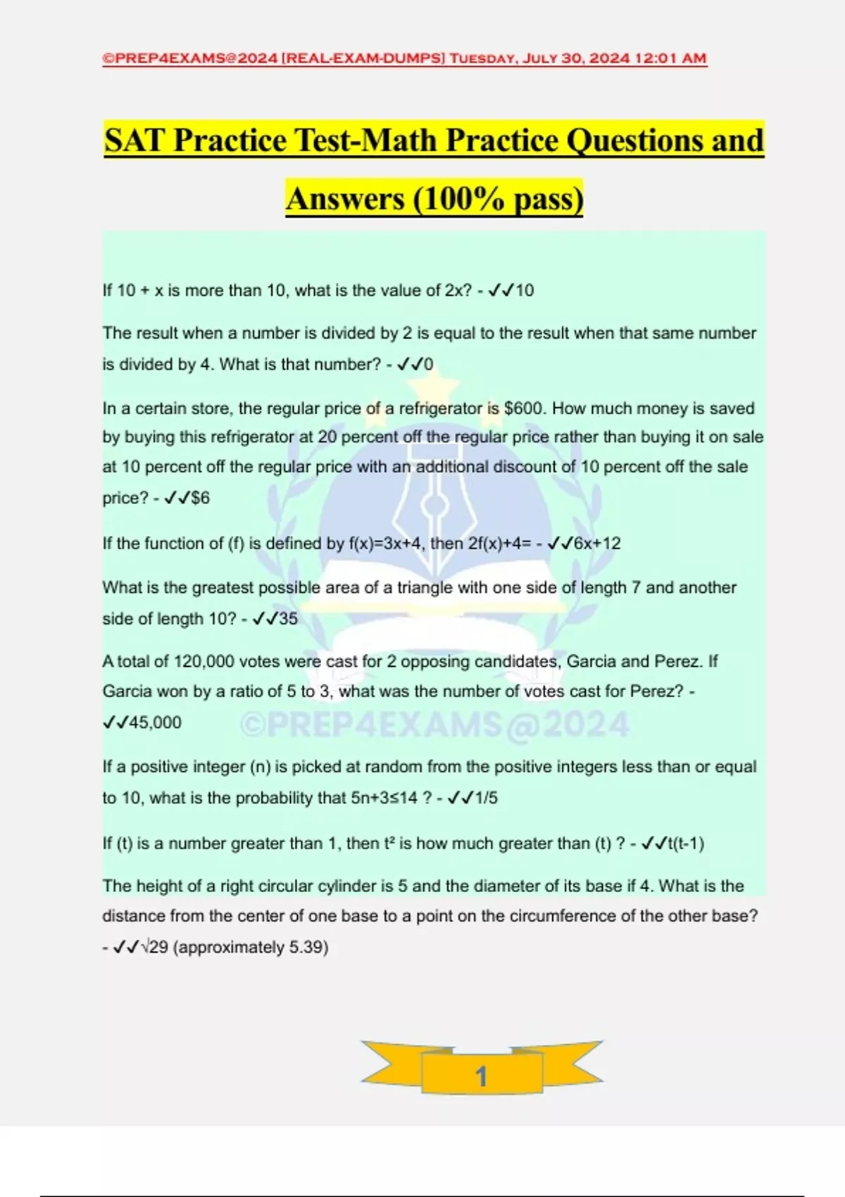 Answers (100% pass)