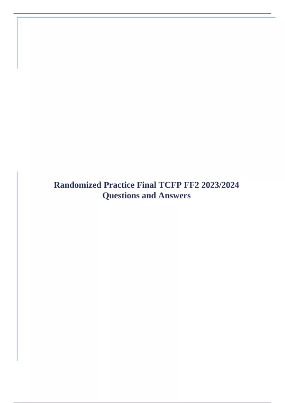 Randomized Practice Final TCFP FF2 2022/2023 Questions and Answers