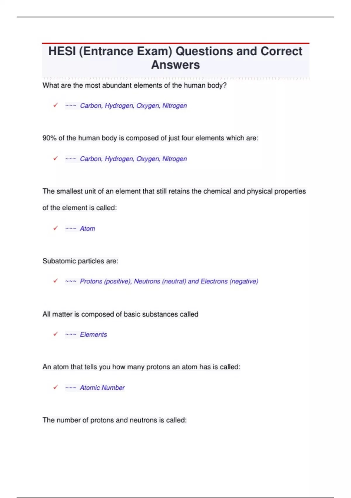 ✓ ~~~ Carbon, Hydrogen, Oxygen, Nitrogen