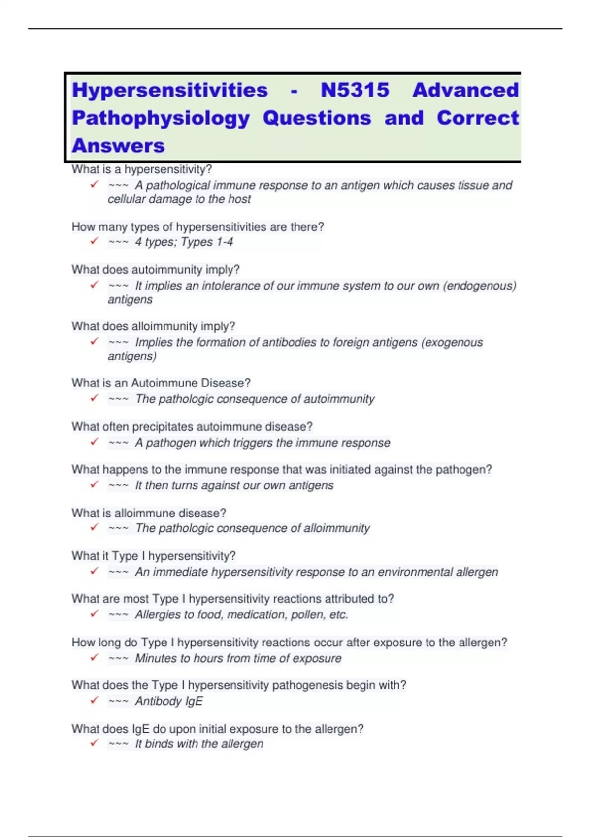 ✓ ~~~ A pathological immune response to an antigen which causes tissue and