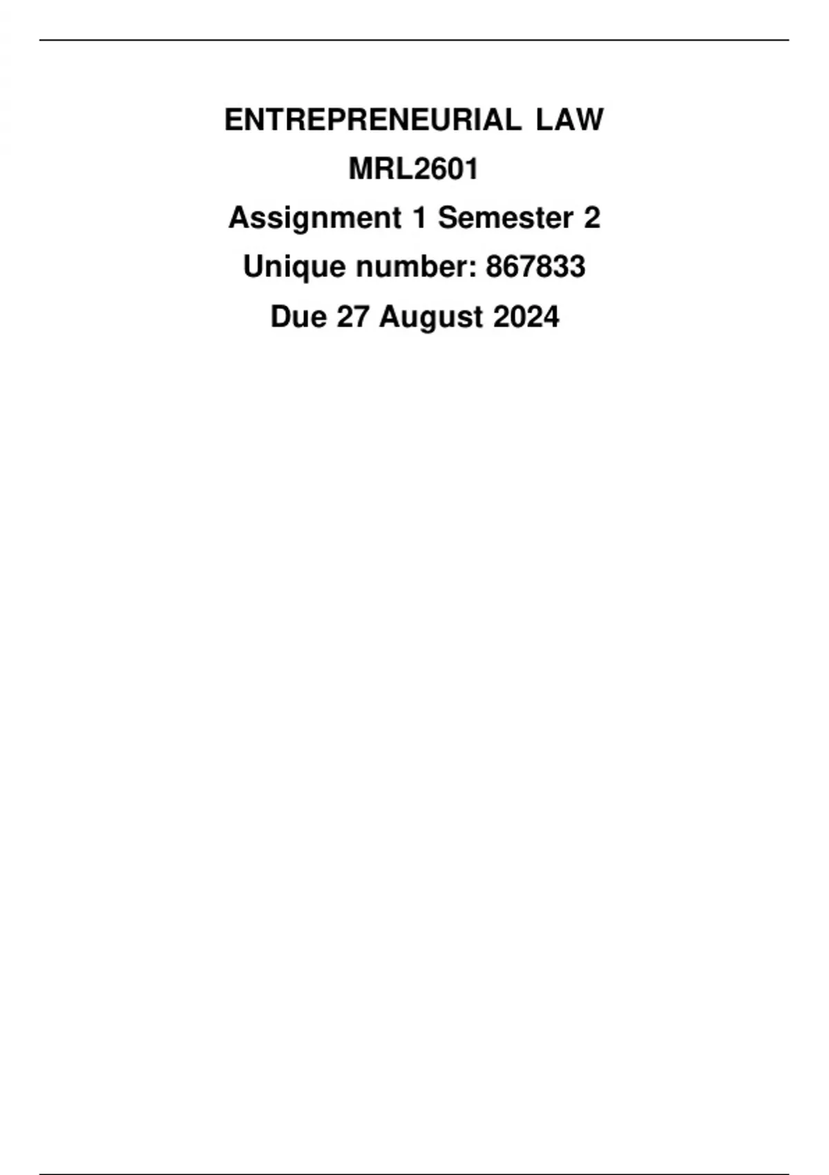 MRL2601 Assignment 1 Due 27 August 2024 (Detailed solution)