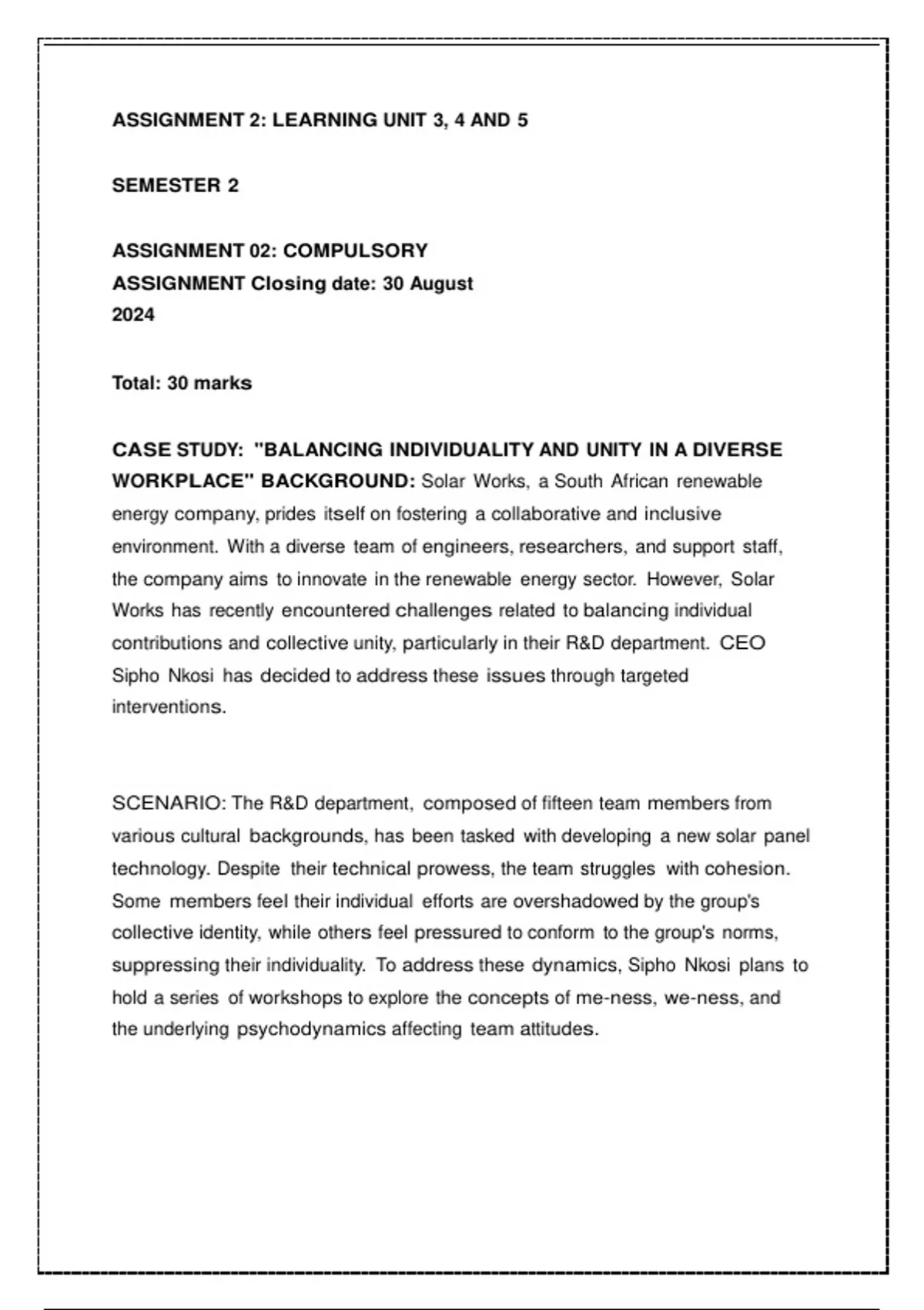 CASE STUDY: "BALANCING INDIVIDUALITY AND UNITY IN A DIVERSE