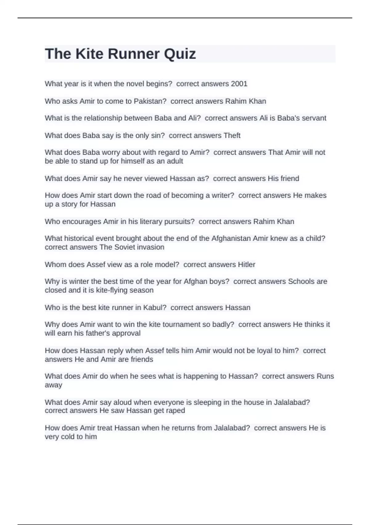 correct answers He saw Hassan get raped