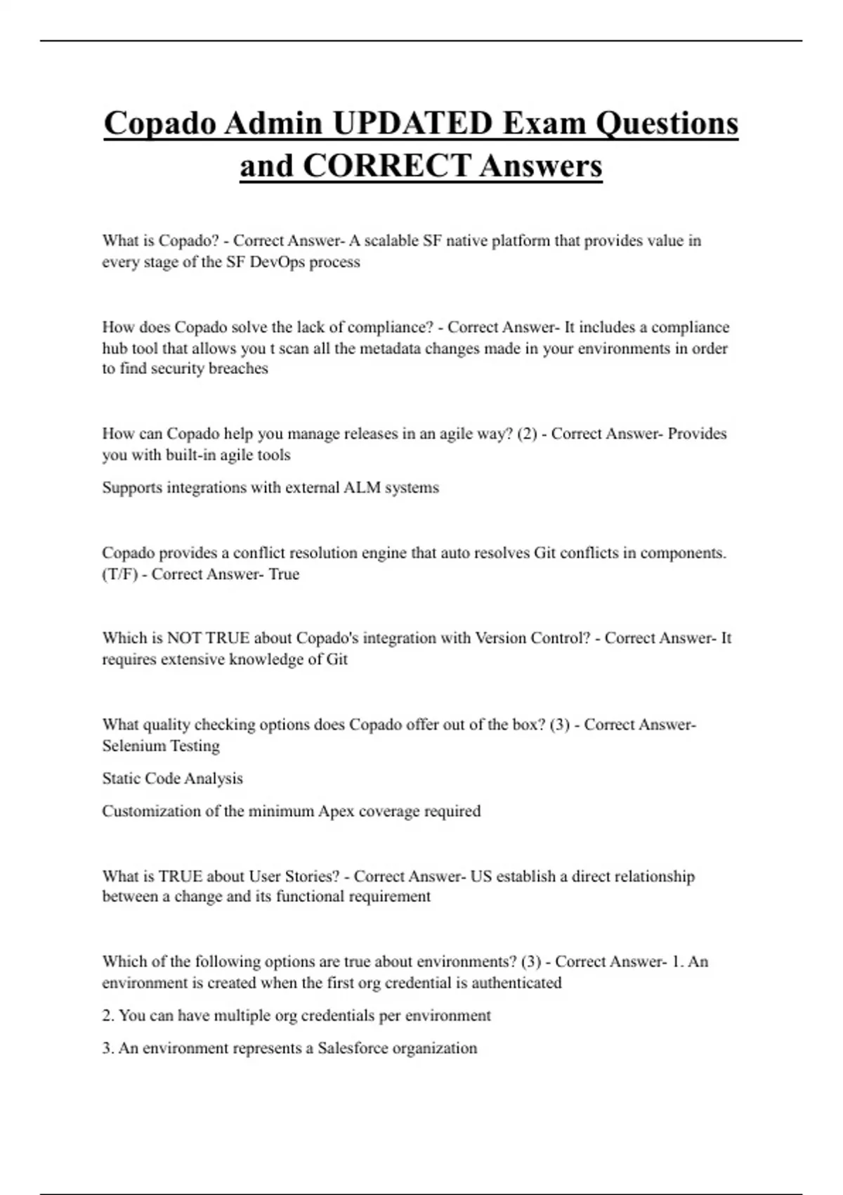 What is Copado? - Correct Answer- A scalable SF native platform that provides value in