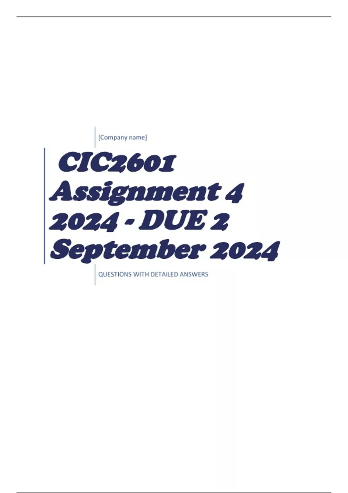 CIC2601 Assignment 4 2024 QUESTIONS AND ANSWERS