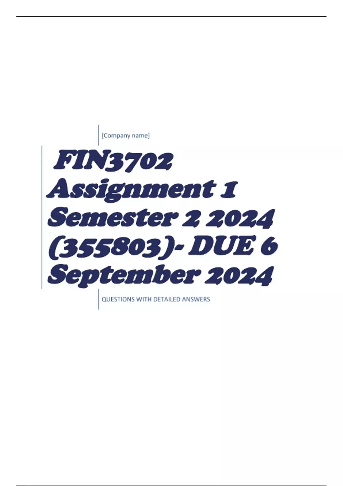 ,FIN3702 Assignment 1 Semester 2 2024 (355803)- DUE 6 September 2024