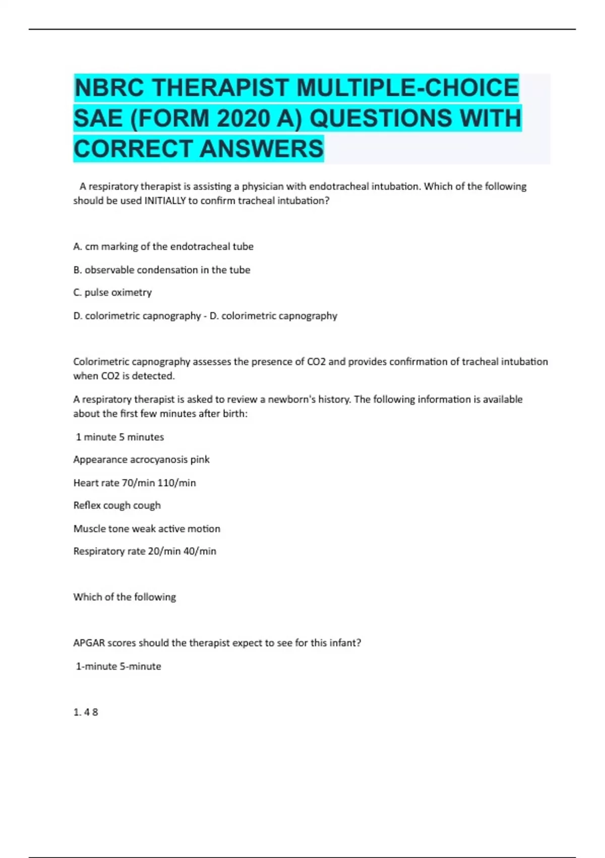 NBRC Therapist Multiple-Choice SAE (Form 2020 A)