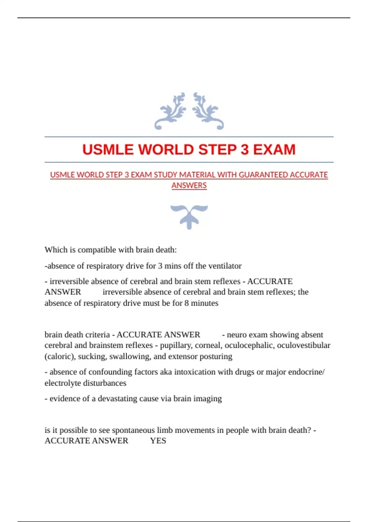 USMLE WORLD STEP 3 EXAM STUDY MATERIAL WITH GUARANTEED ACCURATE ANSWERS