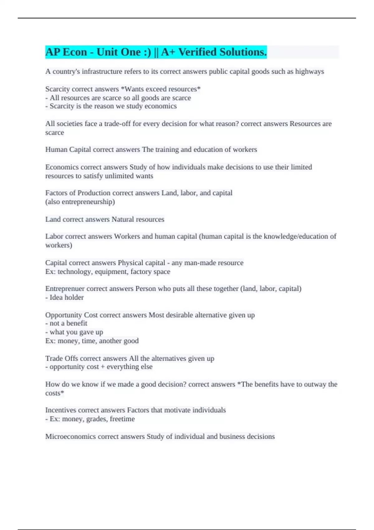 AP Econ - Unit One :) || A+ Verified Solutions.