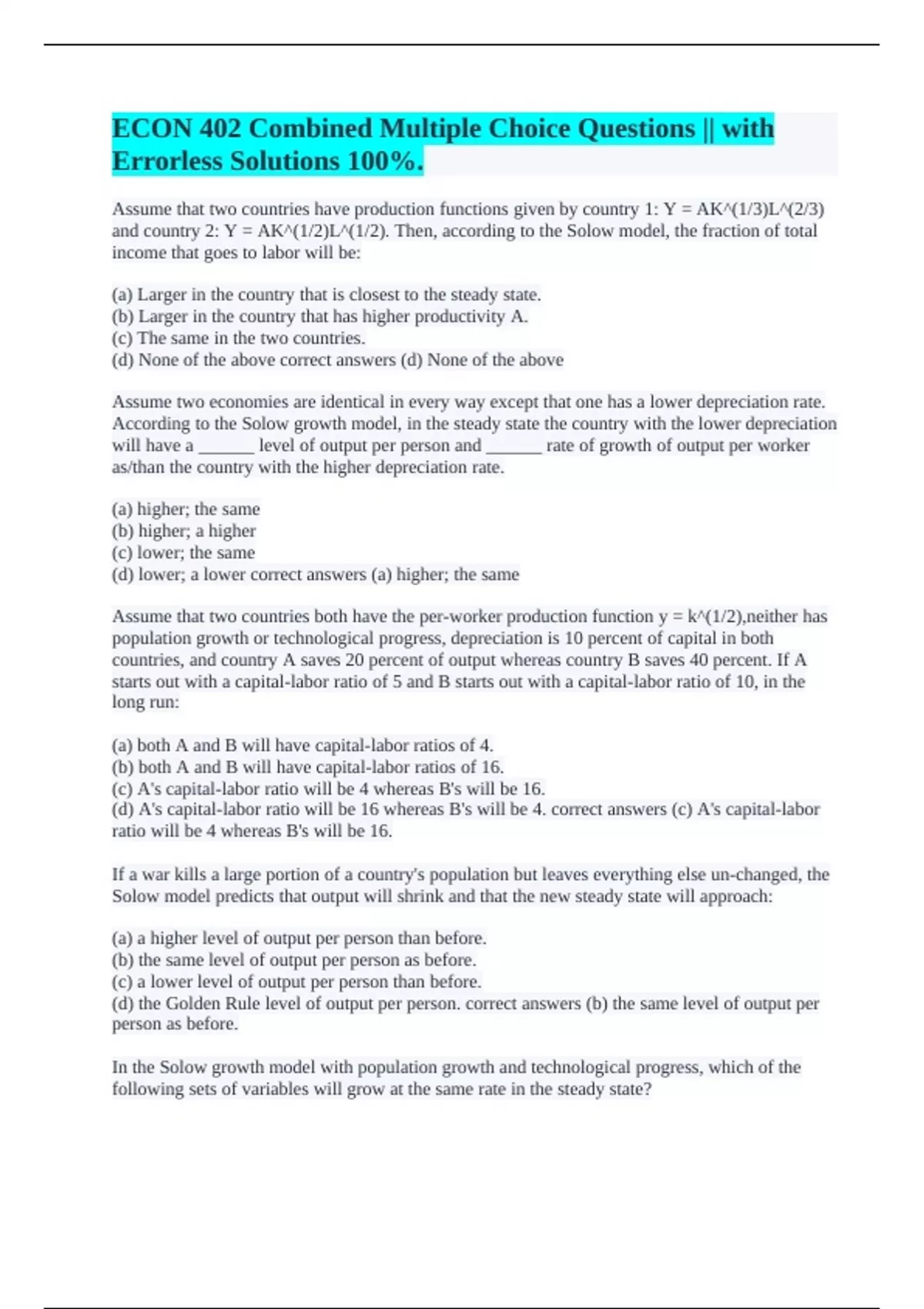 and country 2: Y = AK^(1/2)L^(1/2). Then, according to the Solow model, the fraction of total