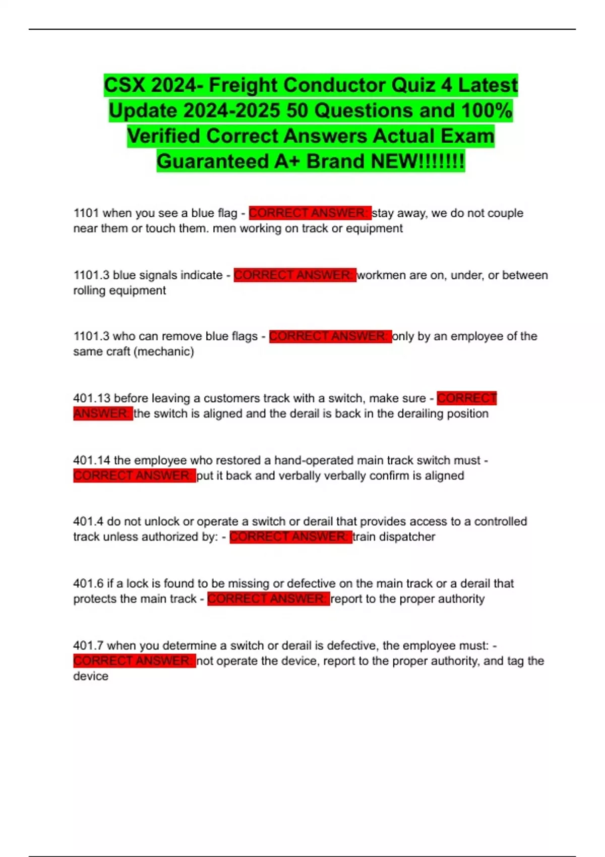 401.13 before leaving a customers track with a switch, make sure - CORRECT