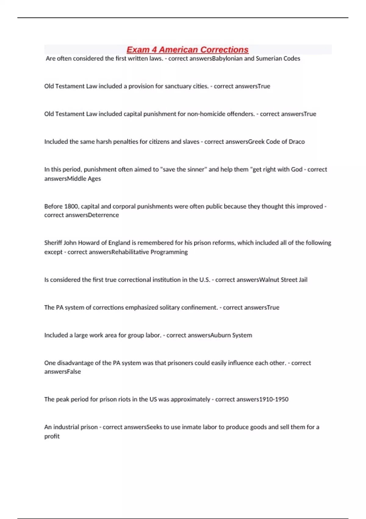 The PA system of corrections emphasized solitary confinement. - correct answersTrue