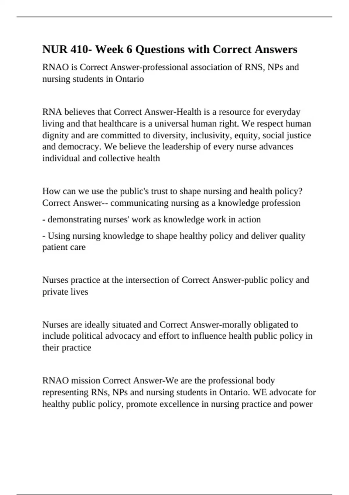 RNAO policy work Correct Answer-1) RNAO responds to consultation