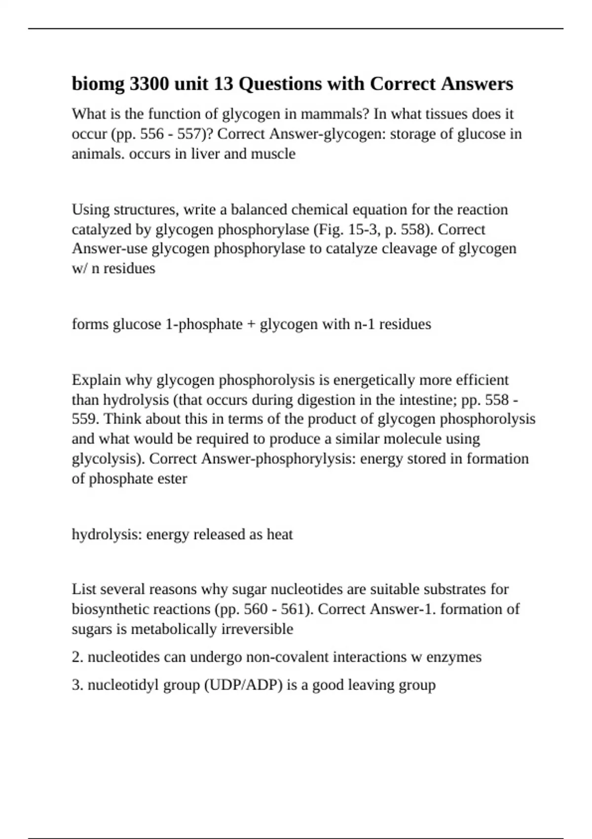 occur (pp. 556 - 557)? Correct Answer-glycogen: storage of glucose in