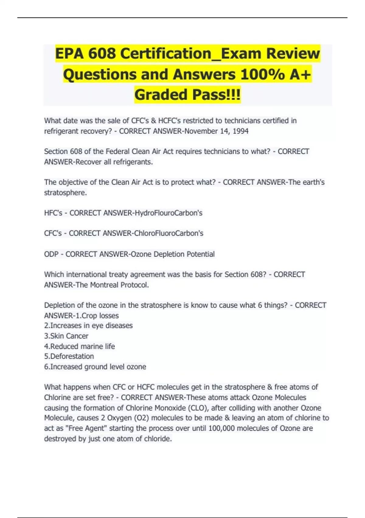 refrigerant recovery? - CORRECT ANSWER-November 14, 1994