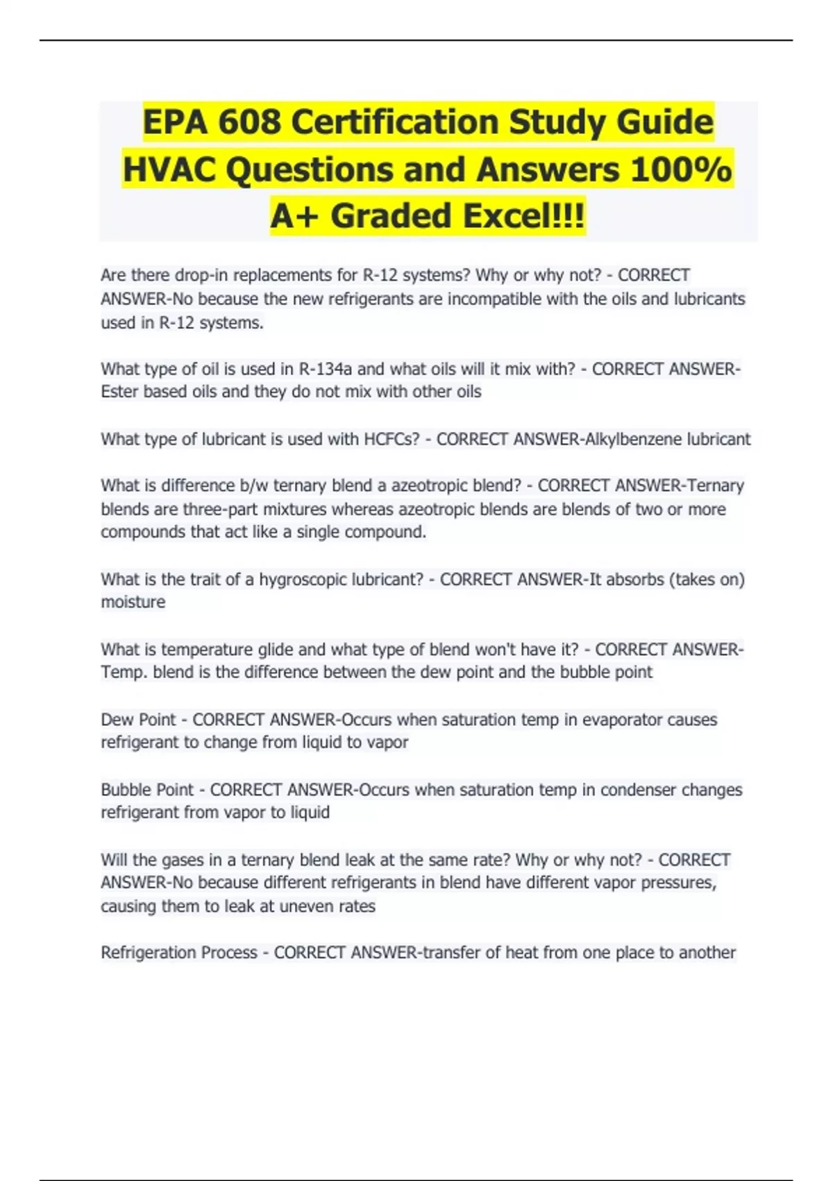 HVAC Questions and Answers 100%