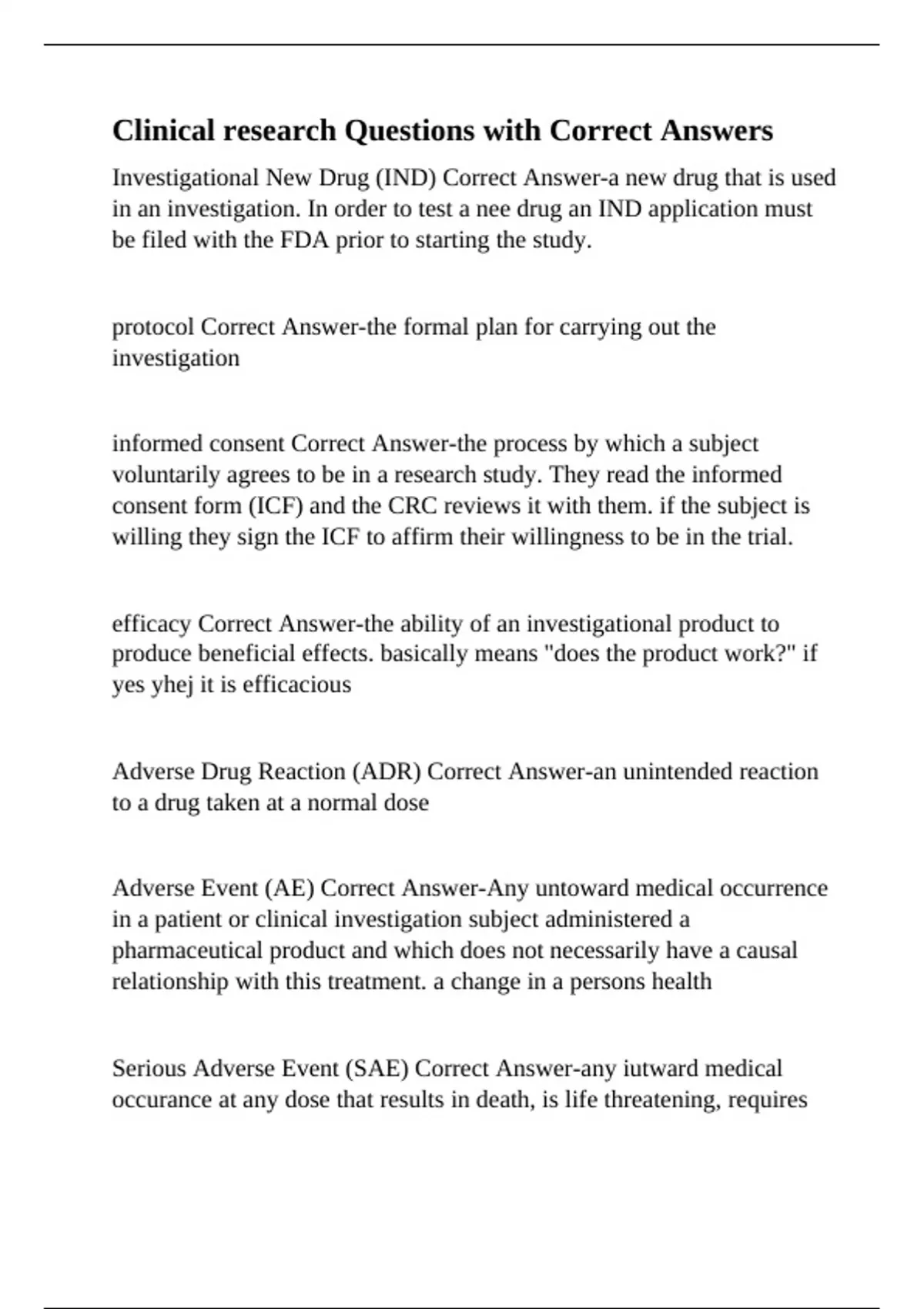 Clinical research Questions with Correct Answers