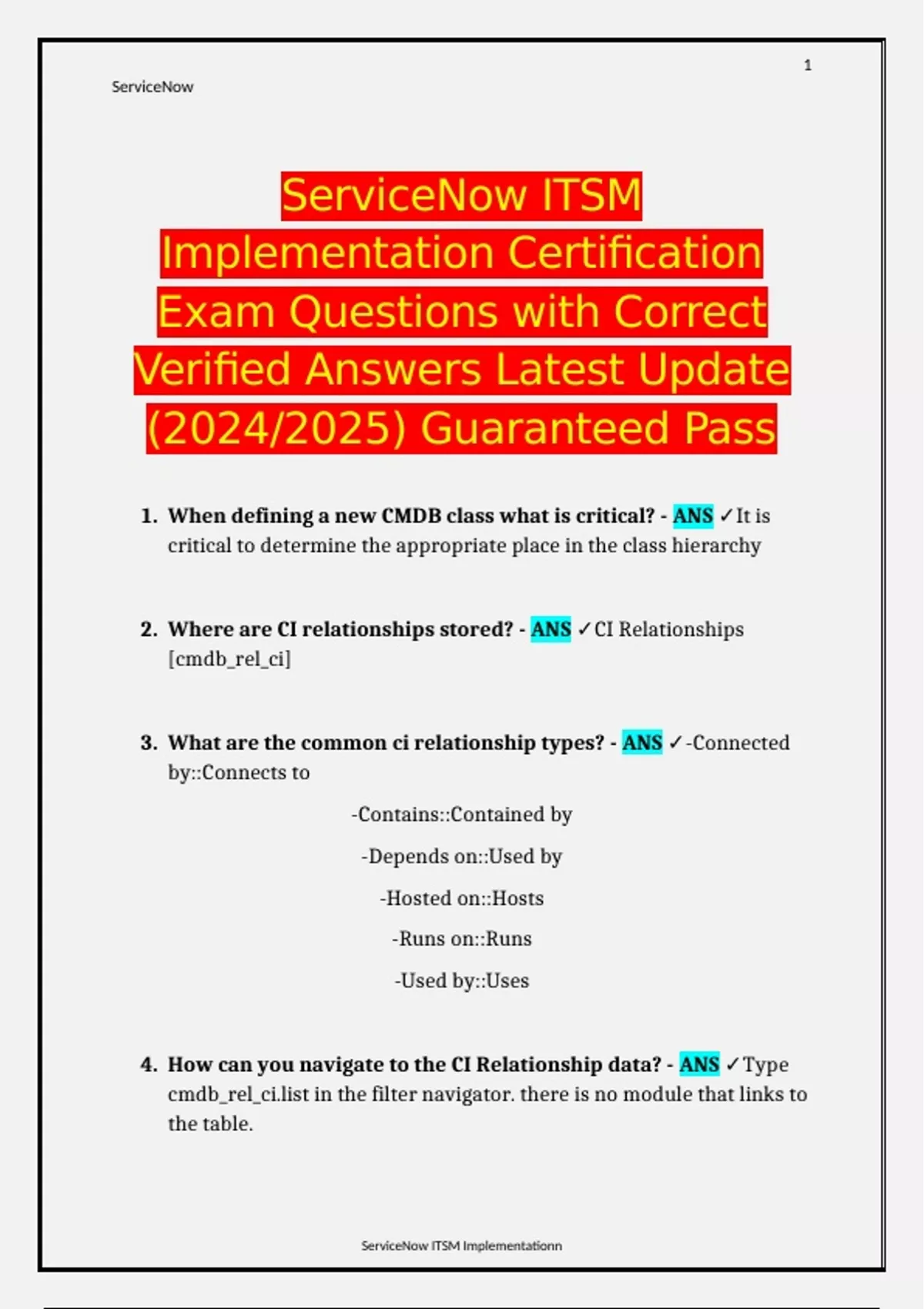 1. When defining a new CMDB class what is critical? - ANS ✓It is