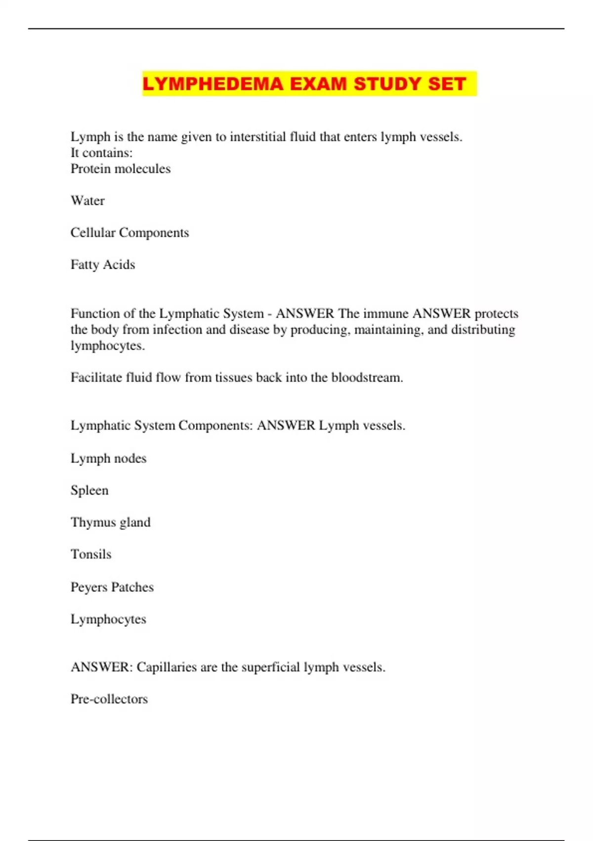 Function of the Lymphatic System - ANSWER The immune ANSWER protects