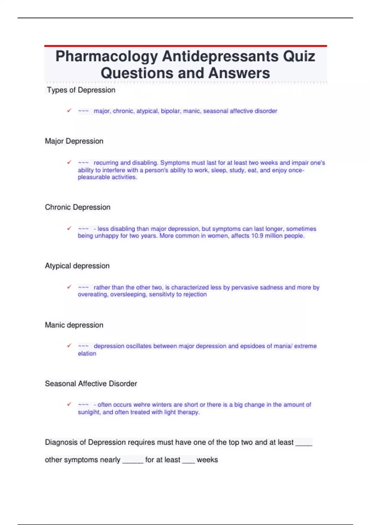 ✓ ~~~ major, chronic, atypical, bipolar, manic, seasonal affective disorder