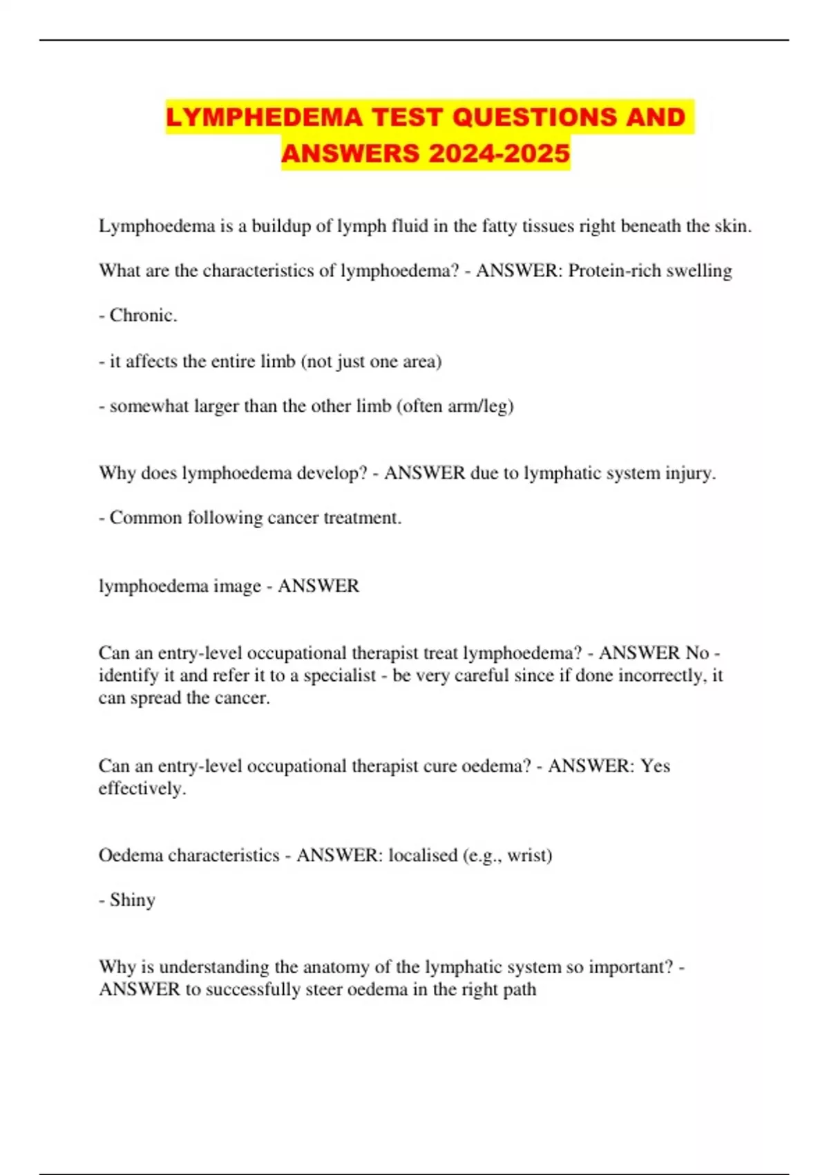 LYMPHEDEMA TEST QUESTIONS AND