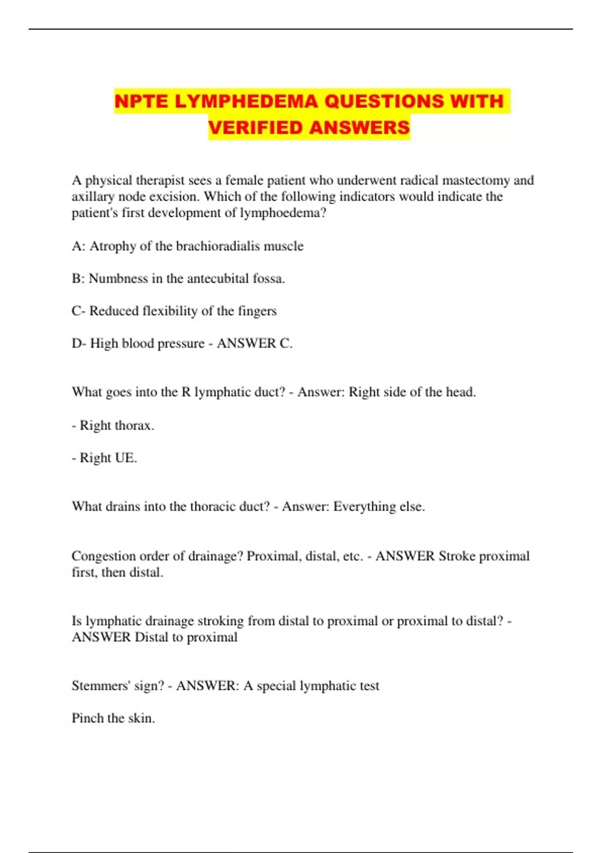 NPTE LYMPHEDEMA QUESTIONS WITH
