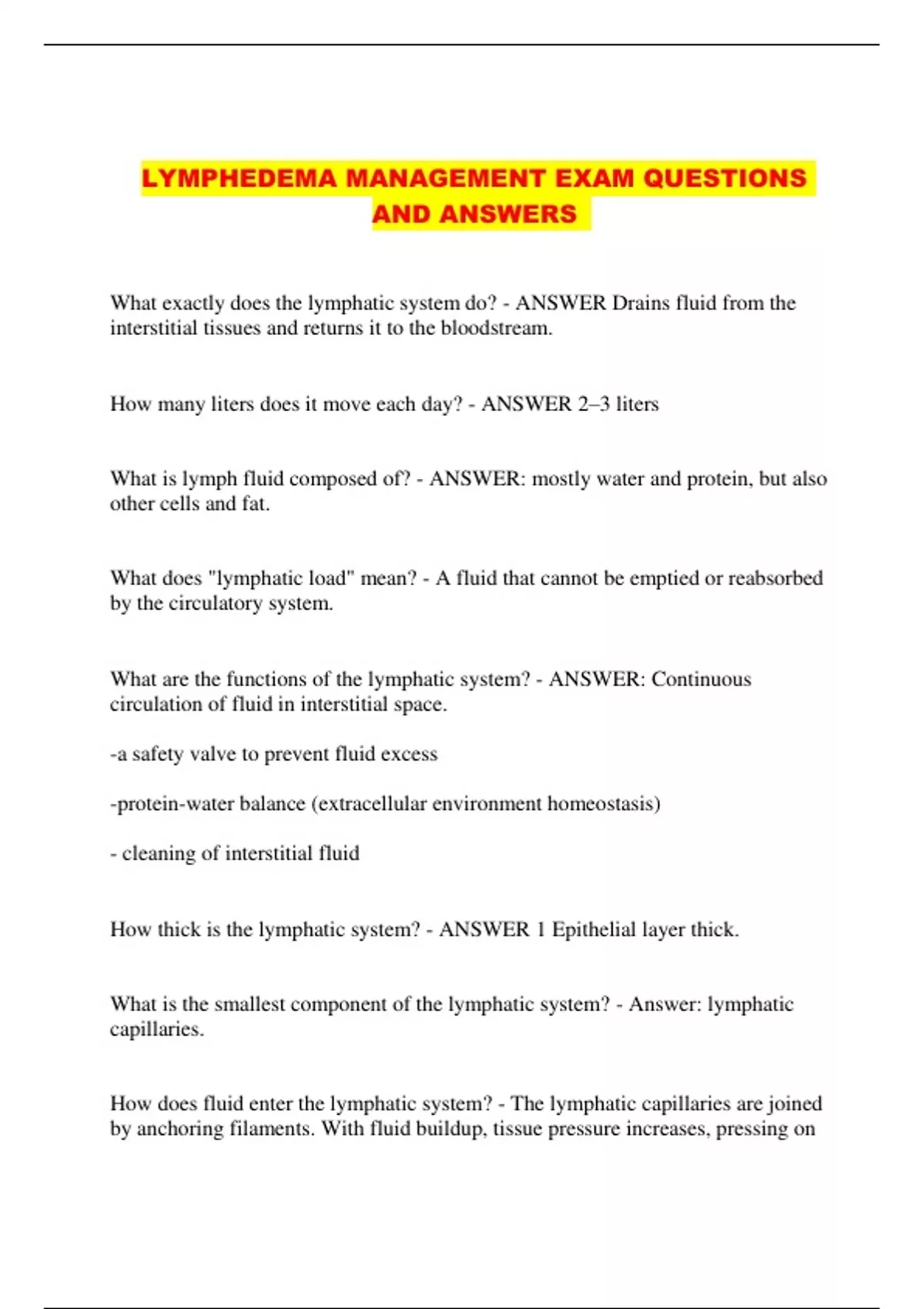 LYMPHEDEMA MANAGEMENT EXAM QUESTIONS
