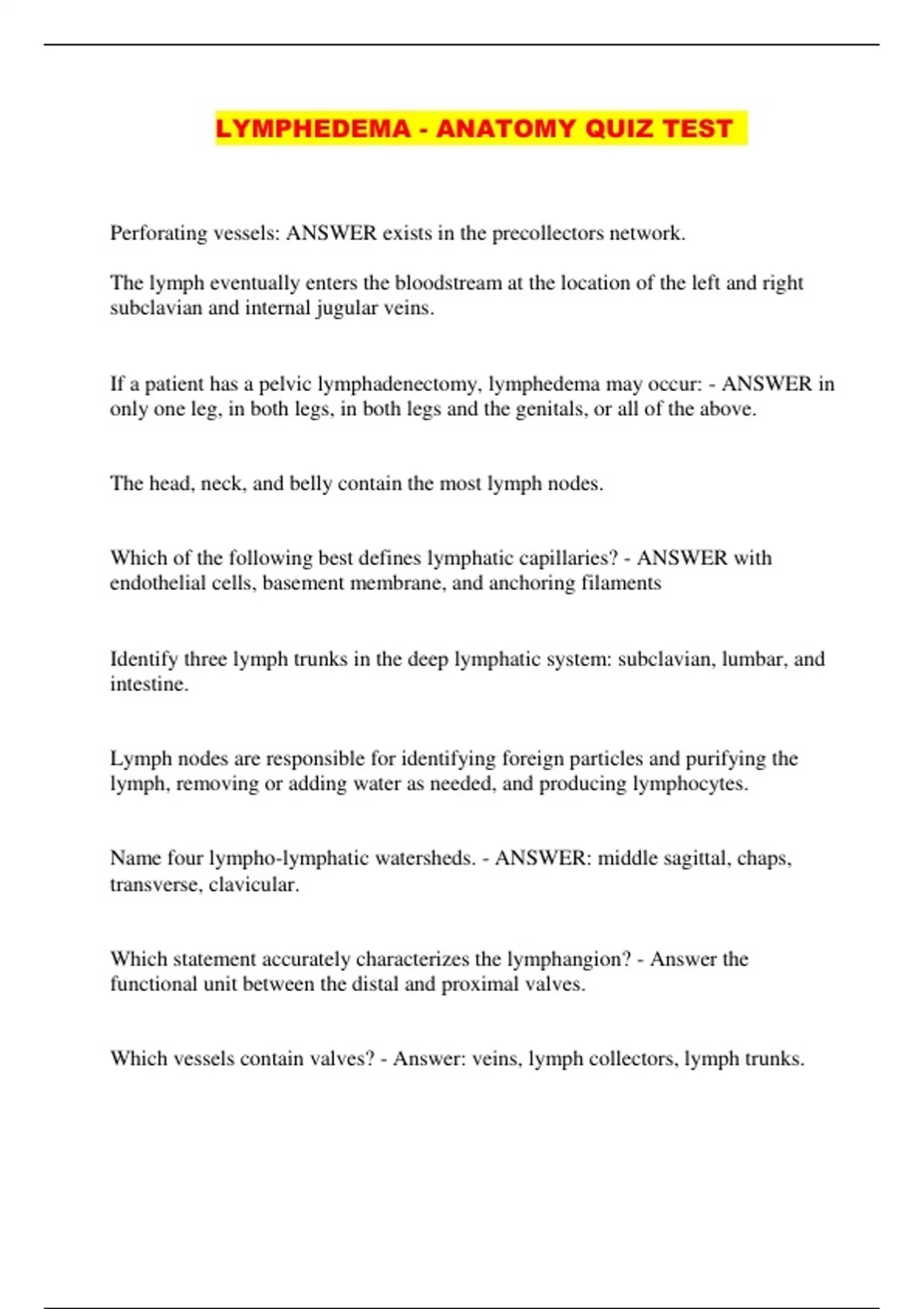 LYMPHEDEMA - ANATOMY QUIZ TEST