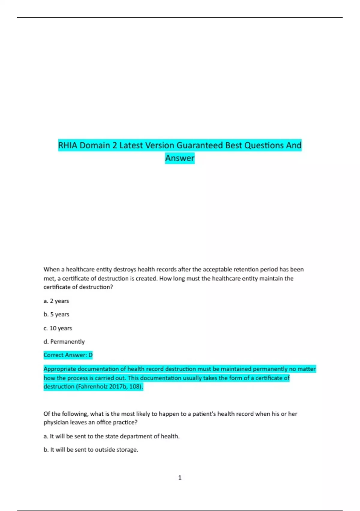 RHIA Domain 2 Latest Version Guaranteed Best Questions And