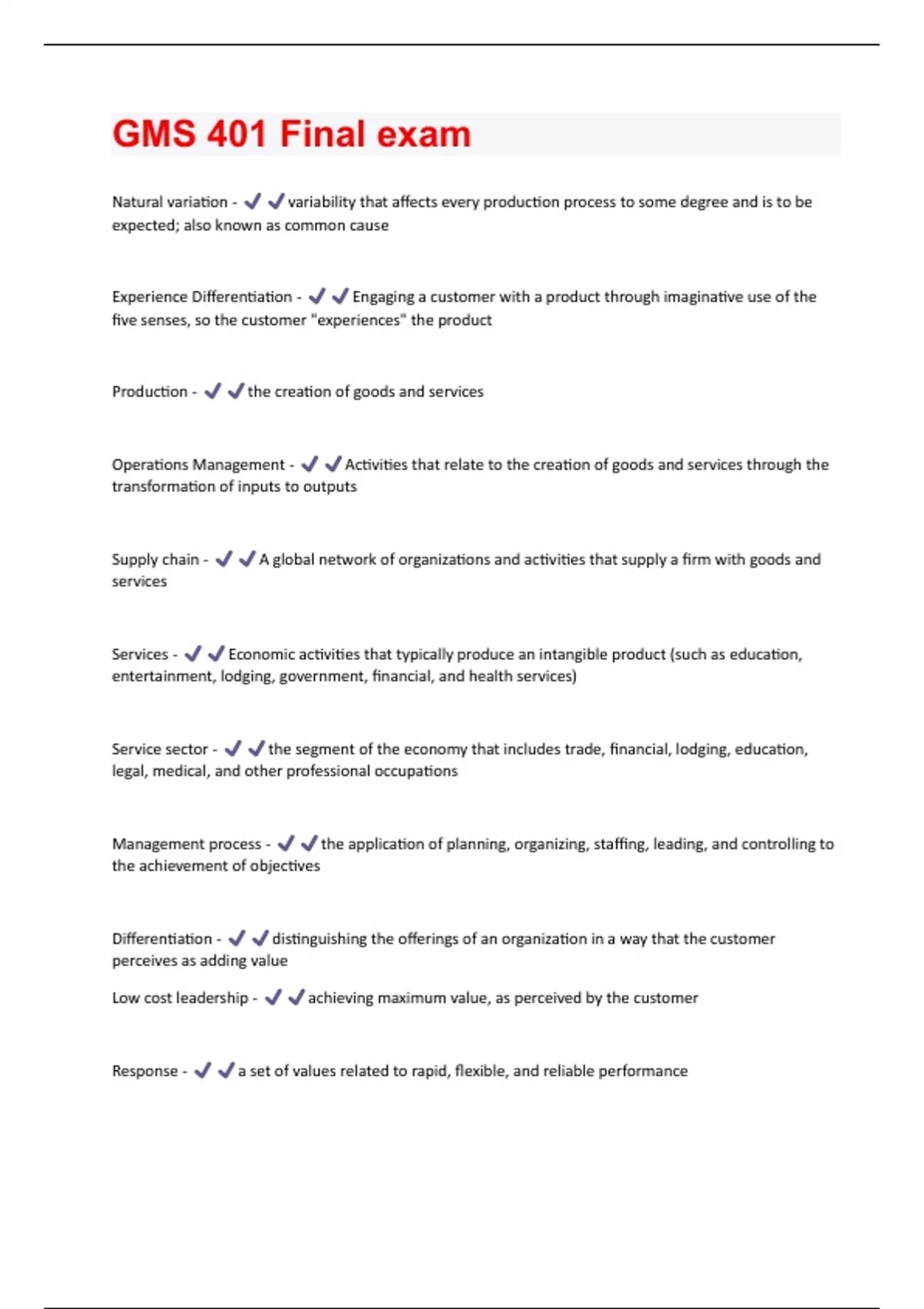 GMS 401 Final exam Questions and Answers well Explained Latest 2024/2025 Update 100% Correct.