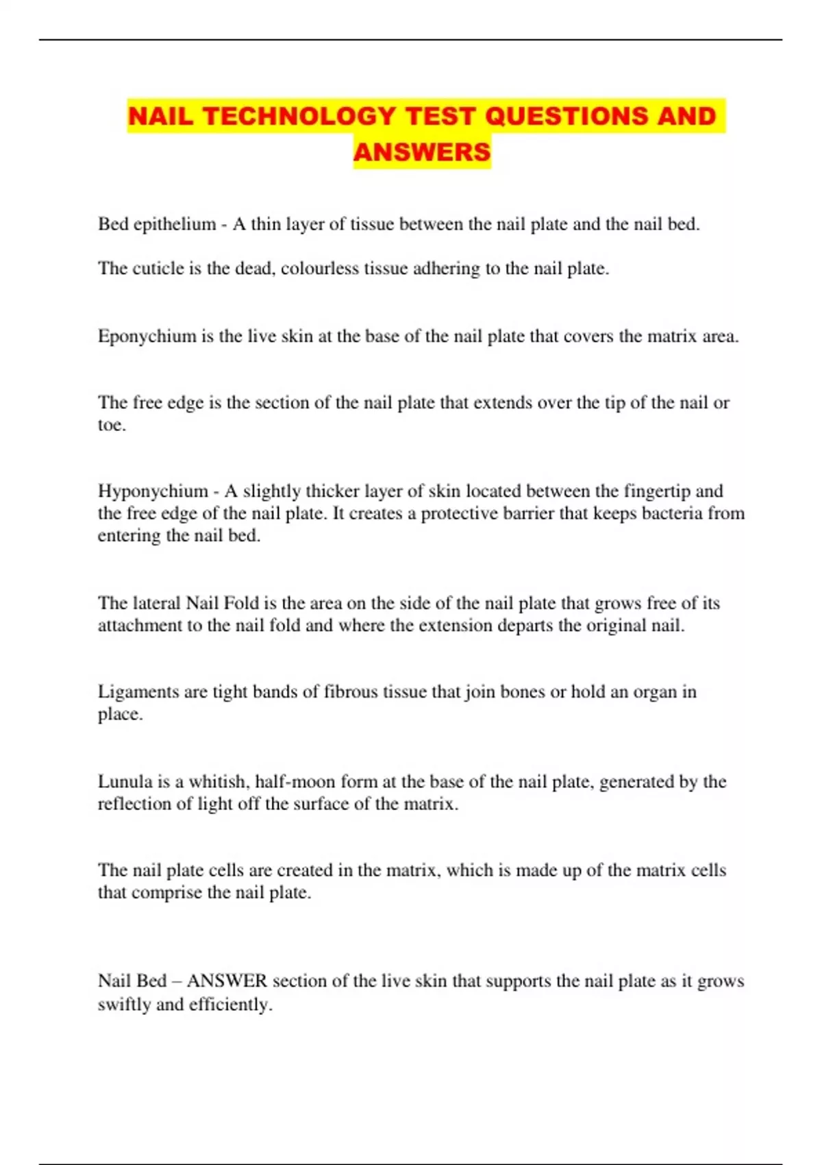 NAIL TECHNOLOGY TEST QUESTIONS AND