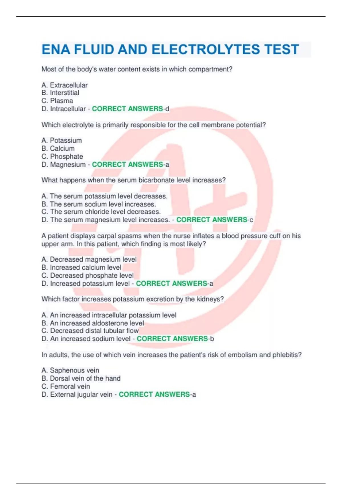 D. The serum magnesium level increases. - CORRECT ANSWERS-c