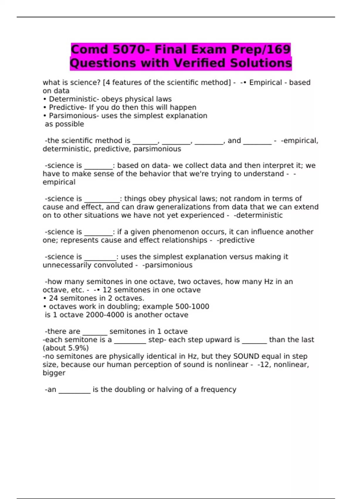 Comd 5070- Final Exam Prep/169 Questions with Verified Solutions