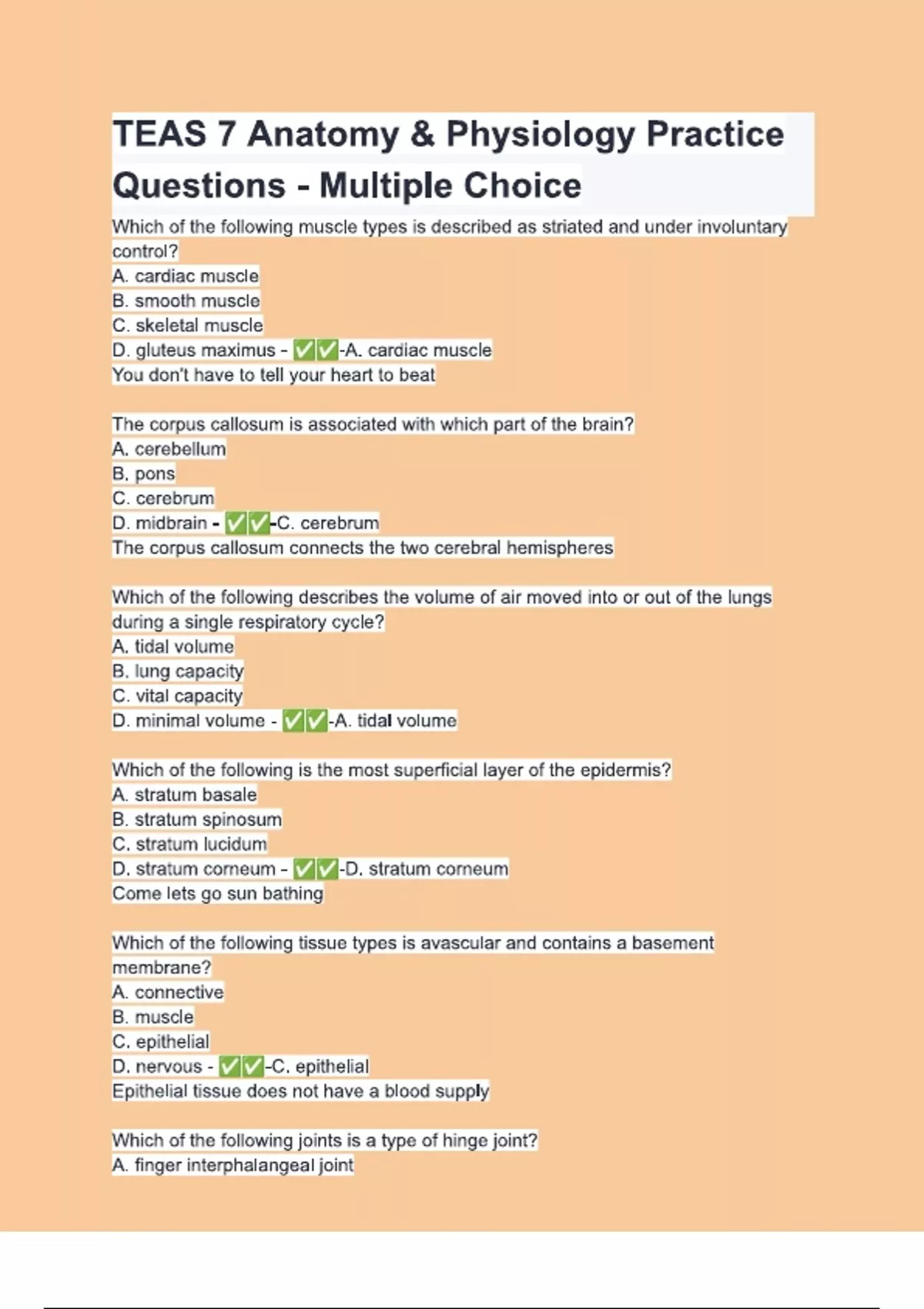 TEAS 7 Anatomy & Physiology Practice Questions & 100% Verified Correct Answers with complete solutions (Latest update